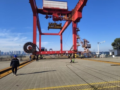 11月19日上午,长沙集星C201门机安全平稳地从03堆场整体移至04堆场,港产科技公司顺利完成该移位项目。 C201门机是一台轨道式集装箱龙门吊,整机重量达300吨,跨距30米,总高度2...